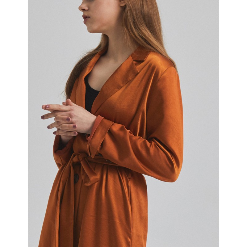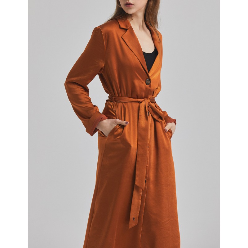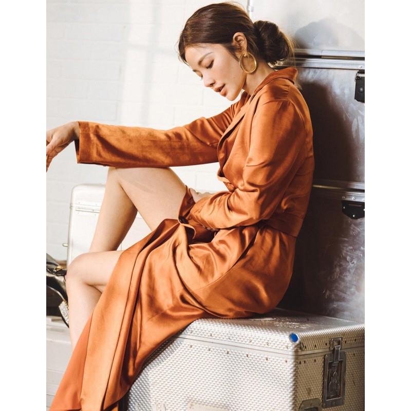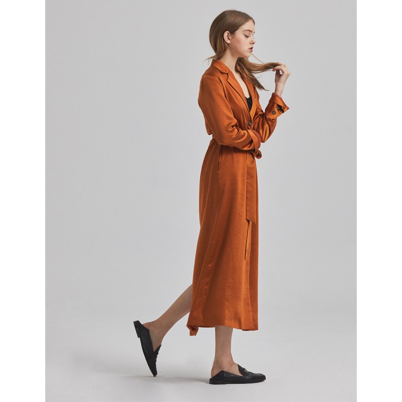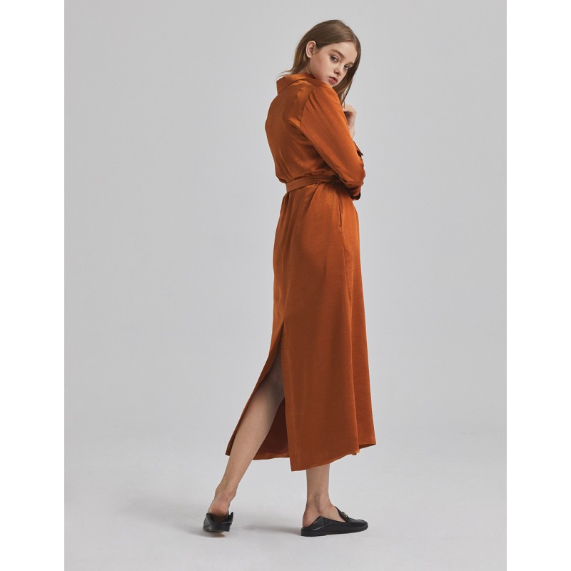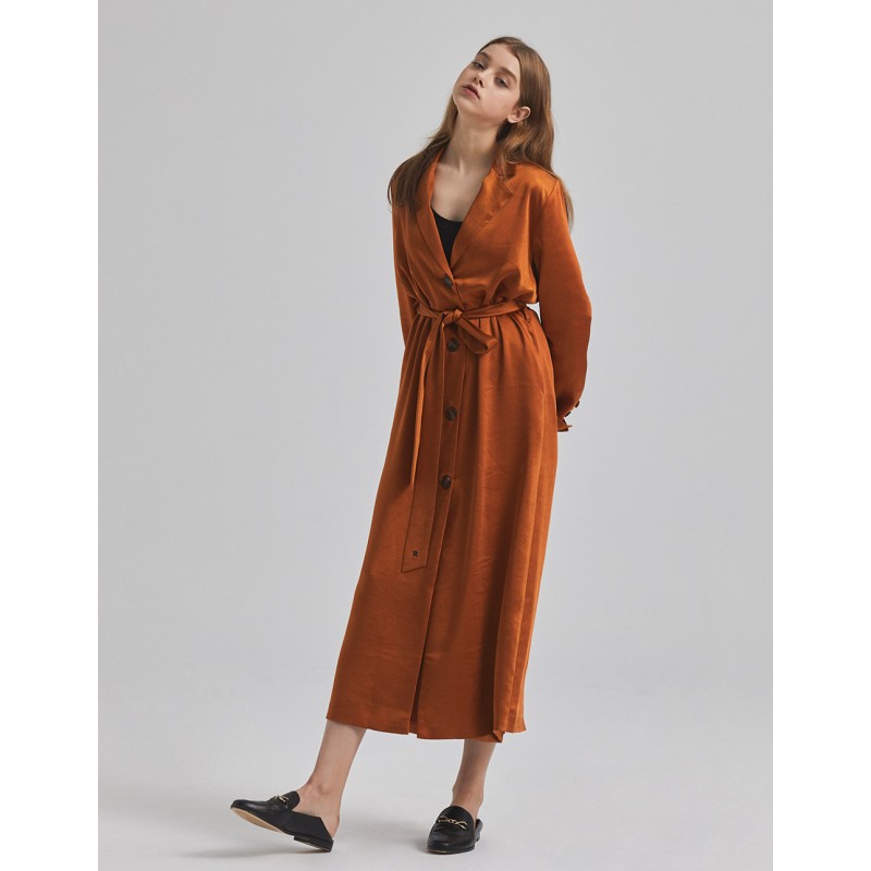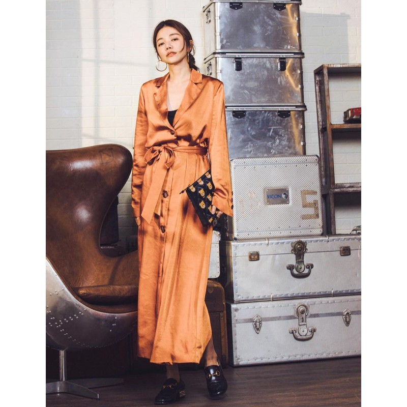 標籤 緞面開釦綁帶長版洋裝
