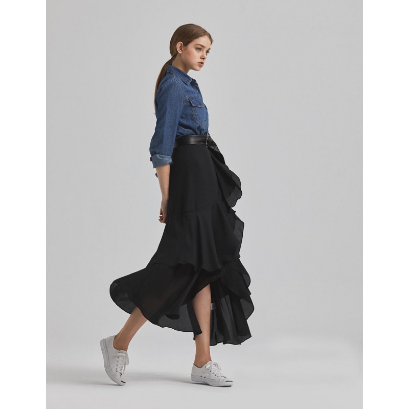 標籤 雪紡荷葉開岔長裙