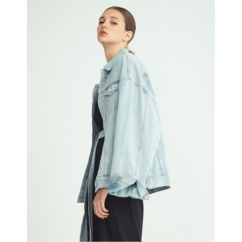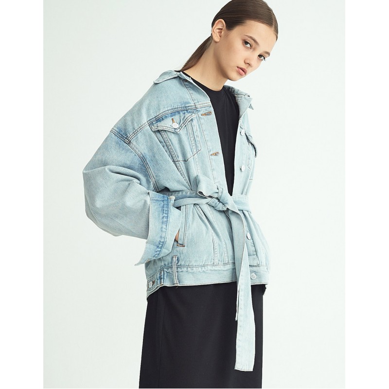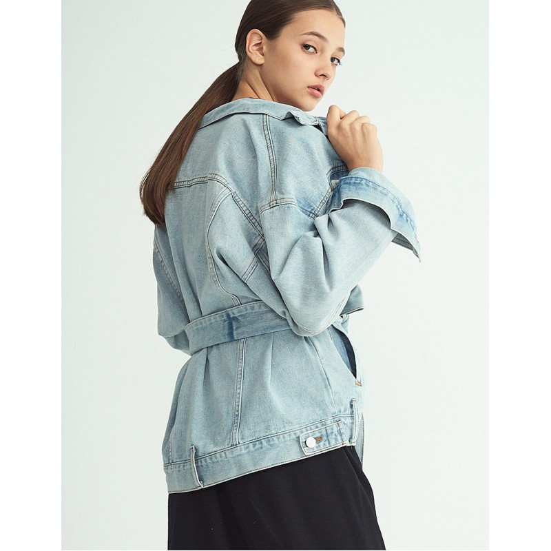 標籤 率性寬鬆牛仔外套(附腰帶)